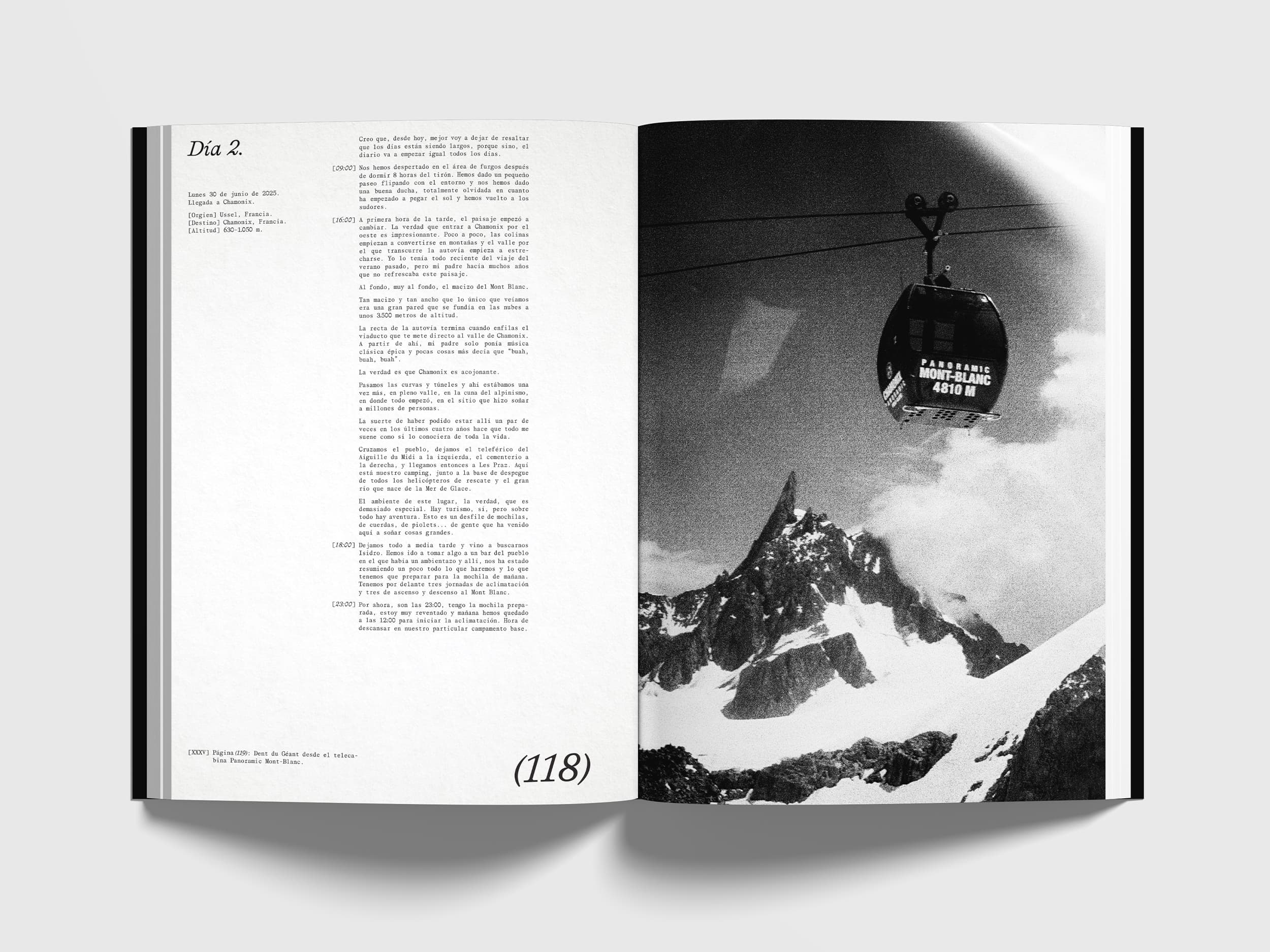 En su primer fotolibro, varrager narra, en primera persona, su expedición al Mont Blanc a través de fotografías analógicas en blanco y negro y textos personales escritos durante el proceso.